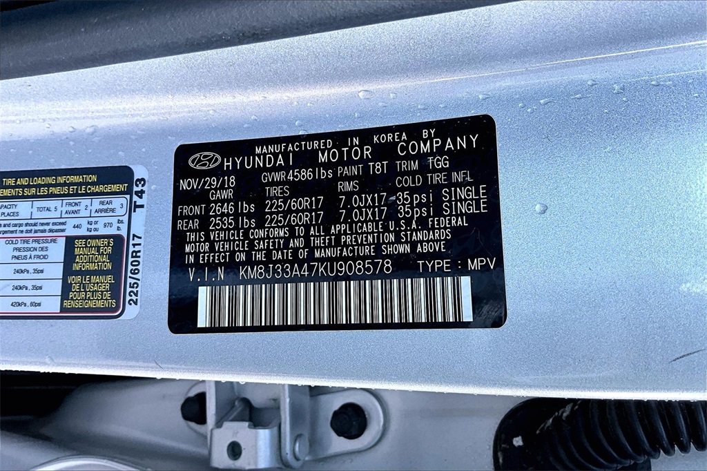 VIN: KM8J33A47KU908578 | Stock #: 908578A | Mileage: 67,016
