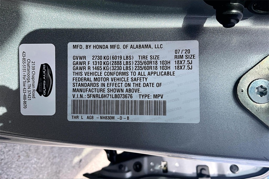 VIN: 5FNRL6H71LB073676 | Stock #: 040757B | Mileage: 32,840